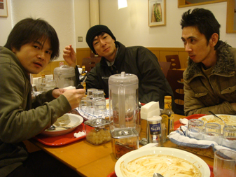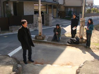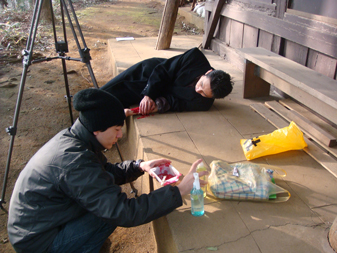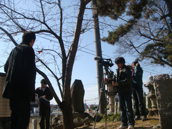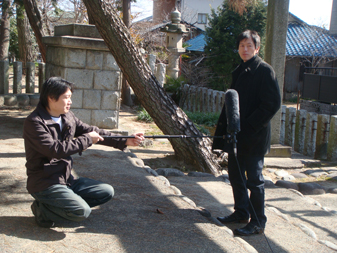 3人で機材を手に持って、案内する監督の方向音痴で迷子になりながら、近くのロケ現場まで徒歩で移動。」