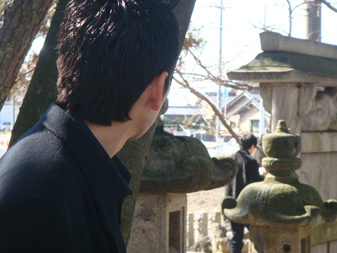 急きょ近辺で代替えのロケ地を探しまわる。午後からの予定も決まっているため、急いで心当たりを当たって行き、いい感じの神社を見つけ見に行くと、見た目はおもいっきり神社なのに普通の家だったりして困惑。。