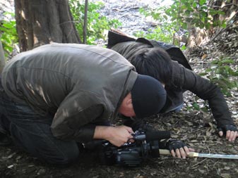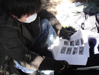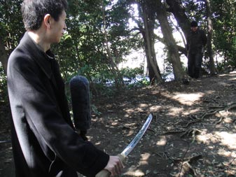 前回、宮崎から出張してきていた山口を、少しの追加カットのためにまた呼び戻すわけにもいかず、衣装のコートで代役を立てて撮影。