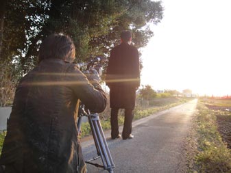 いつもは昔の香港スタイルで、頭の中にある画をつないでいく演出方法をとっているが、今回は、前回までの撮影分を粗編集してコンテを作成、さらにiPodに編集ムービーを取り込み、現場で随時確認しながらの撮影を行いました。