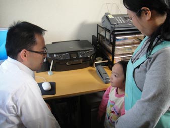 の演技を、真剣なまなざしで見つめるナナカちゃん。初めて見る撮影風景に興味深深。