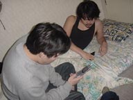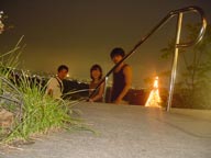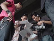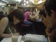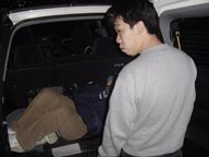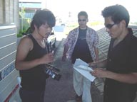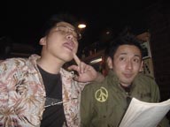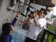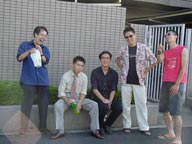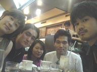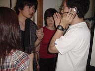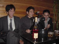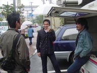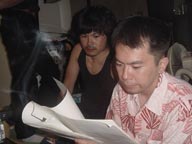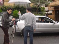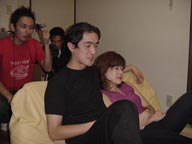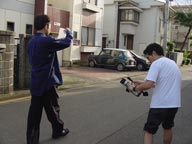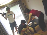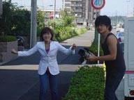 続いて店の中で2人の子分をボスの僕が怒鳴りつけるシーンの撮影、土下座する2人に怒り狂って物を投げつけると言う設定。何にしようか?最初はプラスチックの灰皿にしようかとも決りかけたものの「それはあまりに痛いっすよ〜」と言う 平林くんの自己防衛本能で却下・・・と言う事でライターに変更、それも投げ直す度に リハで壊れてしまい、結局タバコの箱を投げつける事に決定。投げつけられる2人は「どれでも恐い物ですよ〜」と何度も土下座を繰返されてましたが、マッキーがこのシーンで何気に楽しそうに動画まで撮り始めたのには爆笑しました。・・・とりあえず やくざの絡むシーンはアップ!やれやれでもアッ!と言う間の出来事でした。